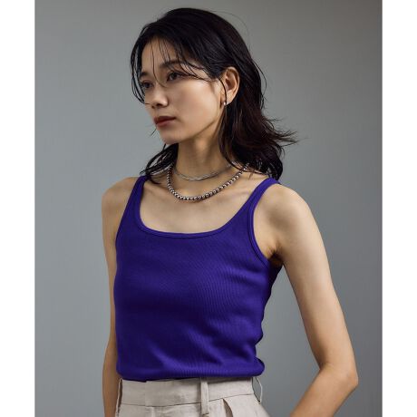 ヘルシーな印象で1枚でもサマになるリブタンクトップ/ノースリーブプルオーバー。