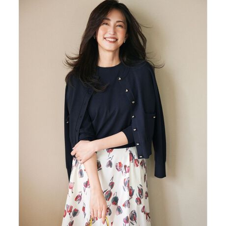 ■素材伸縮性のある細番手の糸を使用したもっちりとした着心地と体のラインをひろいすぎない適度な肉感、きゅっとつまった繊細で綺麗な編地の表情がポイントの素材です。暖かみはありながらもやわらかな光沢感がさらに上品な印象にしています。