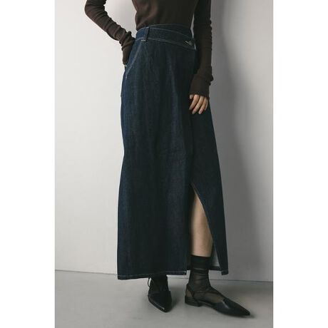 モデル身長166cm(Mサイズ着用)ウエストからのラップデティールがポイントのデニムスカート。ステッチデザインが映える一枚。歩く度に覗く裾スリットがスタイリングに抜け感をプラスしてくれます。フリンジディテールを施したカジュアルなアイボリーとワンウォッシュを加えたモードなインディゴの2色展開です。500ISS10-0841(デニムカバーオール)とセットアップ着用可能。透け感なし、ストレッチなし。【お手入れ方法】マシンウォッシュ可