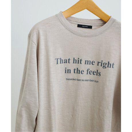 少し透け感のあるスラブ天竺に、ポイントになるロゴをプリントしたロンT。