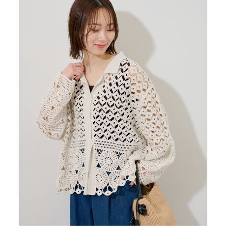 どんなスタイルにも合わせやすいクロシェレースシャツ。