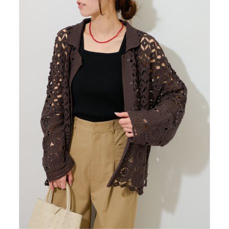 どんなスタイルにも合わせやすいクロシェレースシャツ。