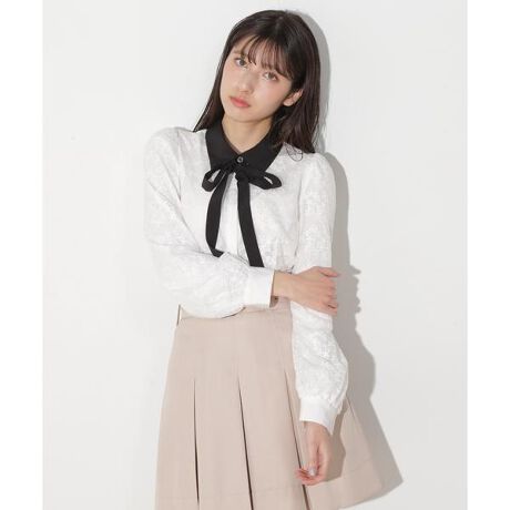 配色リボンタイがキャッチーなレースブラウス。繊細な花柄刺しゅうが施されたソフトチュールレース素材を使用。襟、前立て、カフスは別生地を合わせつつ、バイカラーリボンをアクセントに付けた、デイリーに使いやすいデザインです。スカートもパンツも合わせやすく、ジャケットを羽織った華やかなコーディネートもおすすめです。※撮影時照明の関係により、色味が違って見える場合がございます。またパソコン・スマートフォンなどの環境により、若干製品と画像のカラーが異なる場合もございます。予めご了承ください。商品の色味は、商品単品画像をご参照下さい。※商品画像はサンプルのため、色味やサイズ等の仕様に変更がある場合がございますので、予めご了承ください。