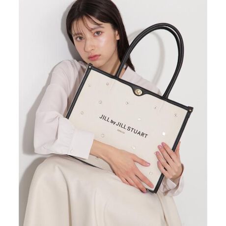 フレンチシックなムードが漂うスクエアフォルムのトートバッグ。金属枠のあるパール調のカシメを手打ちしており、重厚感のある装飾がアクセントになるデザインです。デイリーユースに使いやすいサイズ感で、口元はスナップボタン開閉、中はファスナーポケット×1つ、アウトポケット×1つ。コーディネートに合わせやすいモノトーン配色、華奢なディテール使いが上品な雰囲気のアイテムです。※撮影時照明の関係により、色味が違って見える場合がございます。またパソコン・スマートフォンなどの環境により、若干製品と画像のカラーが異なる場合もございます。予めご了承ください。商品の色味は、商品単品画像をご参照下さい。※商品画像はサンプルのため、色味やサイズ等の仕様に変更がある場合がございますので、予めご了承ください。