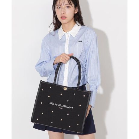 フレンチシックなムードが漂うスクエアフォルムのトートバッグ。金属枠のあるパール調のカシメを手打ちしており、重厚感のある装飾がアクセントになるデザインです。デイリーユースに使いやすいサイズ感で、口元はスナップボタン開閉、中はファスナーポケット×1つ、アウトポケット×1つ。コーディネートに合わせやすいモノトーン配色、華奢なディテール使いが上品な雰囲気のアイテムです。※撮影時照明の関係により、色味が違って見える場合がございます。またパソコン・スマートフォンなどの環境により、若干製品と画像のカラーが異なる場合もございます。予めご了承ください。商品の色味は、商品単品画像をご参照下さい。※商品画像はサンプルのため、色味やサイズ等の仕様に変更がある場合がございますので、予めご了承ください。