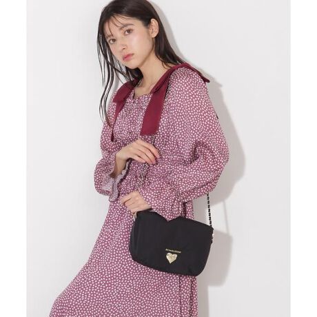 ハート型プレートが愛らしいポイントの中綿入りポシェット。ボリュームのある素材を使用したトレンドアイテムです。ピンクはシルキーな合皮素材、ブラックはドライタッチなポリエステルナイロンを使用。それぞれの素材と絡めたチェーンショルダーが、コーディネートを上品に引き立ててくれるデザインです。フラップ開閉で中身をカバーし、必需品が入れらるサイズ感で、内ポケット1個付き。※撮影時照明の関係により、色味が違って見える場合がございます。またパソコン・スマートフォンなどの環境により、若干製品と画像のカラーが異なる場合もございます。予めご了承ください。商品の色味は、商品単品画像をご参照下さい。※商品画像はサンプルのため、色味やサイズ等の仕様に変更がある場合がございますので、予めご了承ください。