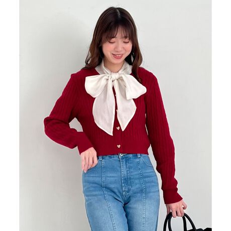 ハートボタンケーブルニットカーデ