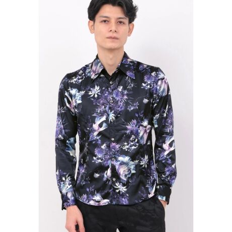 ロイヤルサテン地のなめらかな質感や上質な光沢と相まってラグジュアリーな印象のシャツに仕上がっています。