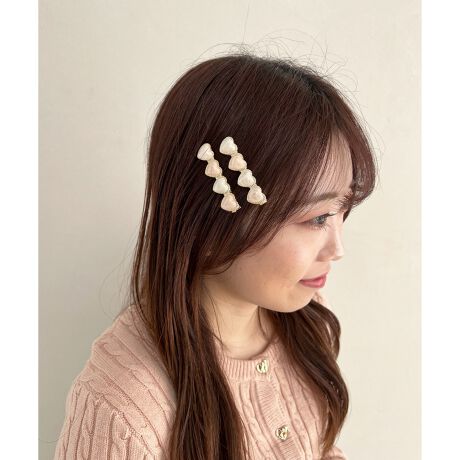 甘く愛らしいガーリーなリボンと、ハートモチーフがアクセントとなったヘアピン。