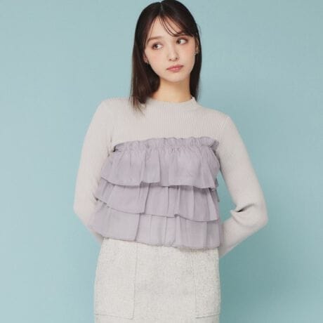 軽やかなティアードフリルが印象的なドッキングリブニット