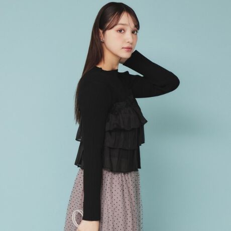 軽やかなティアードフリルが印象的なドッキングリブニット