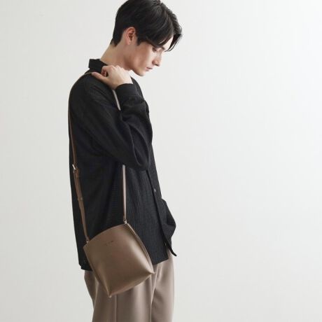 表面に少しシボのある上品な印象のミニショルダーバッグ。