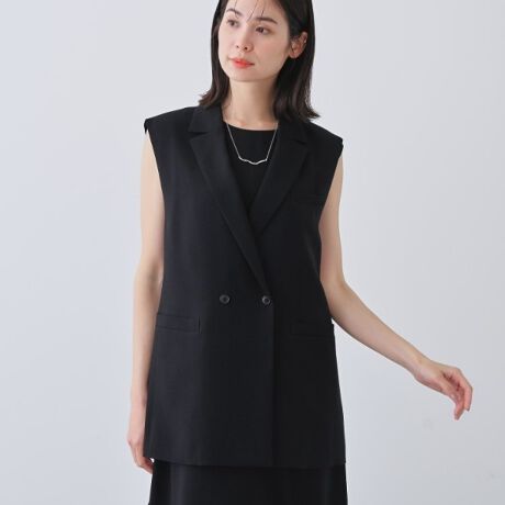 ややドライタッチで清涼感のある素材を使用したミドル丈のジレです。