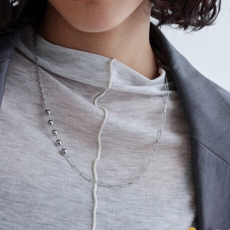 3種類のチェ−ンをMIXしたデザインネックレス。