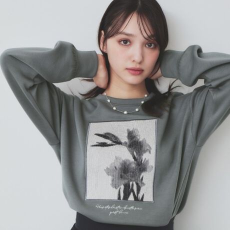 ・お花(グラジオラス)のフォト刺繍が目を引く、トレンド感満載のトップス。