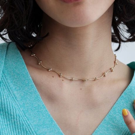 繊細なモチーフが連なった、華やかさの中に上品さを兼ね備えたチェーンネックレス。