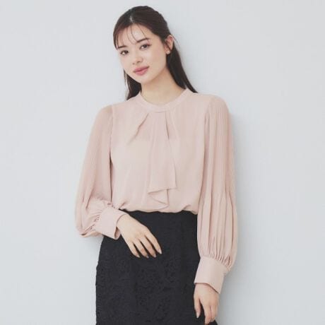 エレガントなデザインが光るボウタイプリーツスリーブブラウス