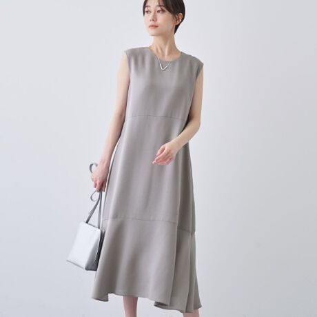 デザインディテールはシンプルに、ややボリュームのあるヘムバランスで雰囲気を出したワンピース。