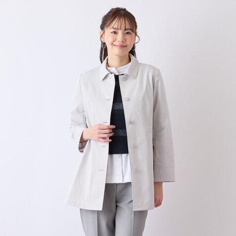 シンプルで合わせやすいステンカラーコート。裏地のない軽やかな一枚仕立て。流行に左右されず着ることのできるデザイン。