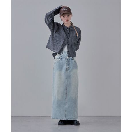 股上深めのダブルウエストがスタイリングに奥行きをもたらす、デニムタイトスカートの登場です。