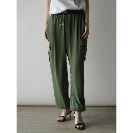 薄手のさらりとした生地を使用し、落ち感シルエットとウエストゴム仕様でリラクシーな履き心地。