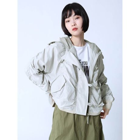 大きめの襟と全体のシャーリングがミリタリーな雰囲気の中にもLASUDらしいカジュアルさを演出。