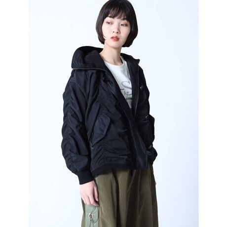 大きめの襟と全体のシャーリングがミリタリーな雰囲気の中にもLASUDらしいカジュアルさを演出。