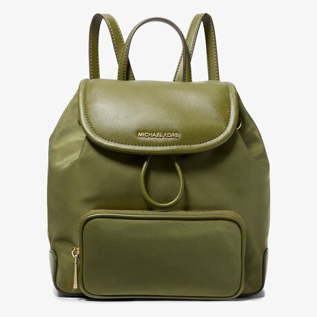 耐久性の高いナイロン素材を使いフラップ式の上品なルックスに仕立てた CARA(カラ) ナイロン バックパック スモール。安心感のあるフルフラップデザインにアクセスの良いラウンドジップポケットが実用性をプラス。ゴールドトーンのシックなレターロゴがさりげないアクセントになり、レディライクな着こなしからオフの日のカジュアルルックまで、洗練されたハンズフリースタイルを叶えます。