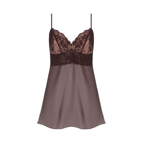 カップ部からアンダーまで軽やかな花柄の編みレースを贅沢にあしらった、軽やかなシフォン生地のミニスリップ。
