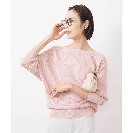 リブの横使いのボートネックのドルマンスリーブプルオーバー。袖口と裾のリブで着るだけでシルエットがサマになるデザインです。2025年春の新色でご用意いたしました。40サイズは店舗限定展開です。