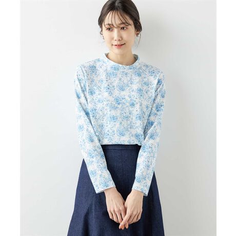 水彩画の点描のような細かい柄が目を引く、華やかな表情のハイネックカットソーです。