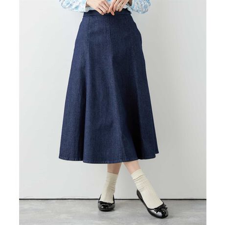 裾に向かって広がったAラインのフレアシルエットが印象的なロングスカートです。