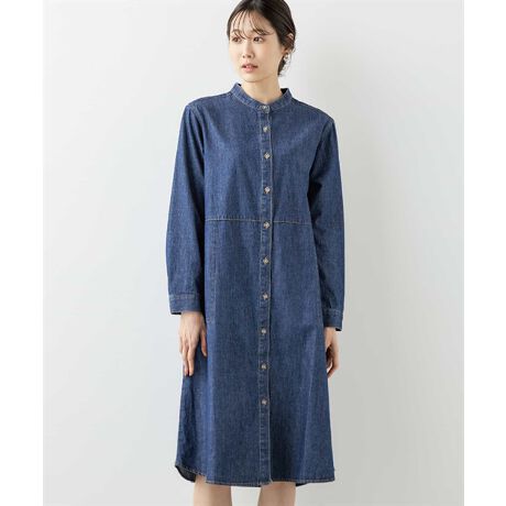 [型番:495605]カジュアルな着こなしが完成するデニムワンピース配色ステッチがポイントとなったデニムワンピースです。ウエストにタブを配して、シルエットを変えられるようデザインしました。前のボタンを開ければ、羽織りとしても活躍してくれます。モデル身長:165cm 9号着用