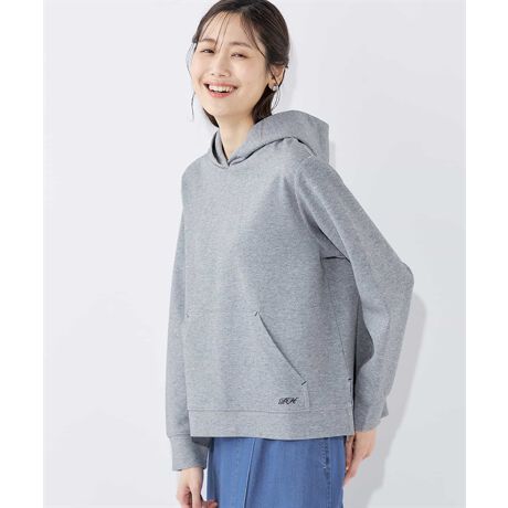 [型番:521090]大人カジュアルに着たいスエットプルオーバーパーカ裾にスリットをあしらったフレアシルエットとショート丈ですっきりと着られます。後ろ姿にアクセントを作る立体感のあるフードもポイント、1枚ではもちろん裾からカットソーやシャツをのぞかせた重ね着もおすすめです。モデル身長:165cm Mサイズ着用