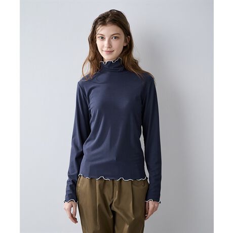 フェミニンな雰囲気が可愛らしいメローデザイン入りのタートルネックです。リブ入りでカジュアル見えする一点です。オールインワンなどと合わせて幅広い季節のインナー使いに活躍します。