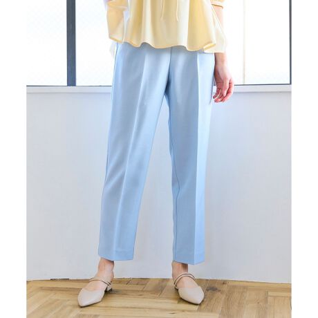 ウエストゴム仕様の気軽さに加えて、無駄のない美シルエットが叶う人気のカラーパンツです。使いやすいアイボリー、グレー、ブラックに加え、爽やかなブルーの4色です。
