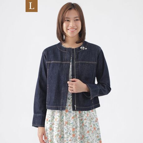 【L】【ウォッシャブル】ブレンドデニムノーカラーブルゾン