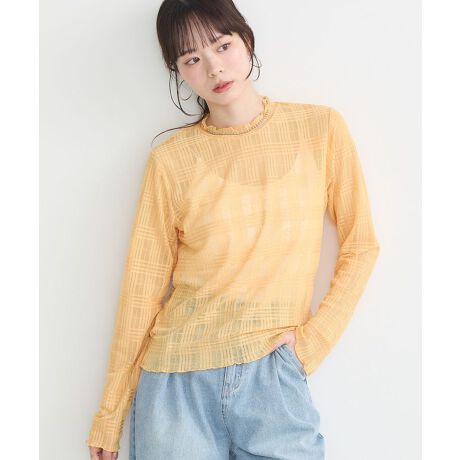 ワントーンで表現した立体感のあるシアーチェックプルオーバー。ぴったりとしすぎないサイジングで、ラフに着用いただけるインナーアイテムです。アウトラインに施したメロー始末がフェミニンなアクセントをプラス。シアー素材ながらもチェック柄で透けにくく、程よい肌みせが叶います。カラーはお好きな色を選べる4色展開。