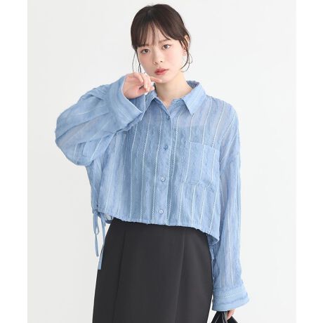 チュールや刺繍をライン使いしたジャカード素材のデザインシャツ。控えめなシアーの抜け感が優しい印象をプラスしてくれる軽やかな一枚です。ショート丈にワイド幅の袖バランスがこなれ感たっぷり。サイドにドロストリボンをプラスして絞りアレンジした甘めのスタイリングも楽しめます。