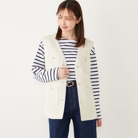 普段のコーディネートに加えていただくだけで華やかなスタイルが完成するジレ。