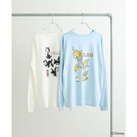 『ピノキオ』の人気キャラクターを大きくバックプリントしたロングTシャツ。胸元のさりげない刺繍ロゴもおしゃれなアクセントです。程よい厚みのコットン素材で着心地良く、どんなボトムにも合わせやすいすっきりシルエット。1枚ではもちろん、インナーとしても重宝するデイリー使いに最適なおすすめのアイテムです。「クレオ」のヒレはきらりと輝くラメプリントになっているのも可愛いポイントです◎透け感[なし]