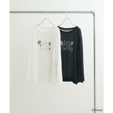 『ピノキオ』のキャラクタープリントが目を惹くロングTシャツ。きらりと輝くラメロゴを加えたデザインで、アクセントをプラスしました。透け感のあるシアー素材は、着るだけでこなれた雰囲気を演出。ベーシックなカラー展開でスタイリングに合わせやすく、1枚ではもちろんレイヤードとしても使える汎用性の高いアイテムです。透け感[あり]