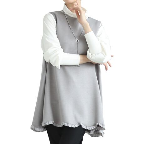 ひとさじの可愛いをプラスするミニフリルフレアチュニック。いつものコーデにほんのり甘さを加えてくれる女性らしいアイテムです。裾に広がりをつけたしなやかなシルエットも魅力。程よい厚みの生地はロングシーズンご利用いただけるアイテム。インナーを変えるだけで雰囲気を変えて楽しめます。