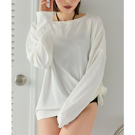 ・サイドに深めのスリットデザインを入れたカバーアップラッシュガード。