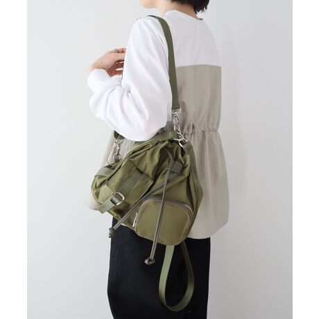 ショルダー使いやハンドバッグなどマルチウェイで使えるリュック。コンパクトな巾着フォルムながらも見た目以上の収納力と便利なポケットを備えた機能的なデザインです。トレンドのパラコードを付け替えたアレンジもおすすめ。上品なツヤ感のあるナイロン素材でカジュアルからトレンドのスタイルまで幅広く合わせてお使いいただけます。※モデル着用画像は、光の当たり具合で色味が違って見える場合がございます。※お使いのモニター環境によって商品の色味が違って見える場合がございます。