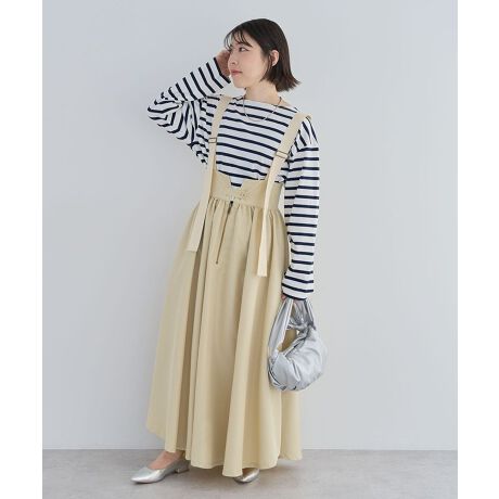 フロントスリットにジップディテールが魅力的なミリタリースカート。女性らしいフレアシルエットに存在感のあるサスペンダーを加えカジュアルライクに仕上げました。ウエストバックゴム仕様でリラクシーな着用感も魅力的。シンプルなカットソーに合わせるだけでインパクトのある着こなしが叶うおすすめアイテムです。透け感[なし]