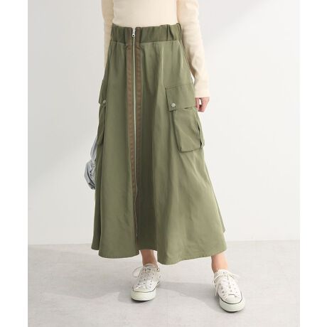 大人の着こなしが叶うミリタリーライクなロングスカート。大きなフラップポケットをアクセントに、光沢のある生地感ときれいなAラインシルエットが上品な1枚です。着脱しやすいフロントジップに加え、ウエストゴム仕様で履き心地も快適。レディライクなヒール靴やブラウスを合わせてきれいめなカジュアルスタイルがおすすめです。透け感[なし]