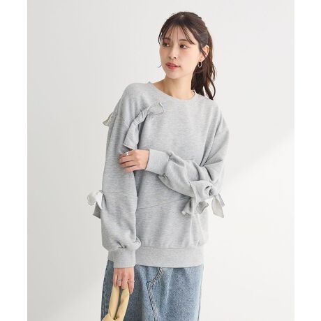 遊び心のあるリボンデザインが目を惹くスウェットプルオーバー。フェミニンなリボンながらも同素材にすることで甘さを抑えたカジュアルな1着です。シルエットはこなれ感たっぷりのオーバーサイズ。シンプルなワントーンカラーなので、アクセサリーやキャップでアクセントをプラスしたスタイリングもおすすめです。個性的なアイテムは1枚で着映えすること間違いなし。透け感[なし]