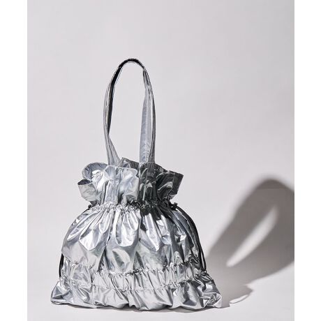フラットなスクエアフォルムにシャーリングアクセントを効かせたトートバッグ。カバン上部のドロストコードを絞ってシェイプアレンジもお楽しみいただけます。長めのハンドルで肩掛けしやすく、軽量素材なのも嬉しいポイント。メタリックに艶めくシルバーにクールなツヤ感のブラック、どちらも魅力的な2色展開です。※モデル着用画像は、光の当たり具合で色味が違って見える場合がございます。※お使いのモニター環境によって商品の色味が違って見える場合がございます。