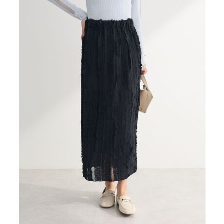 表情豊かな縦ラインが目を惹くトレンドライクなIラインスカート。バックスリットで足捌き良く、シアー感のある足元が春らしく軽やかに演出します。ウエスト総ゴムでリラクシーな着心地も嬉しいポイント。シンプルなトップスと相性良く、1枚で着映えが叶うおすすめのアイテムです。透け感[なし]